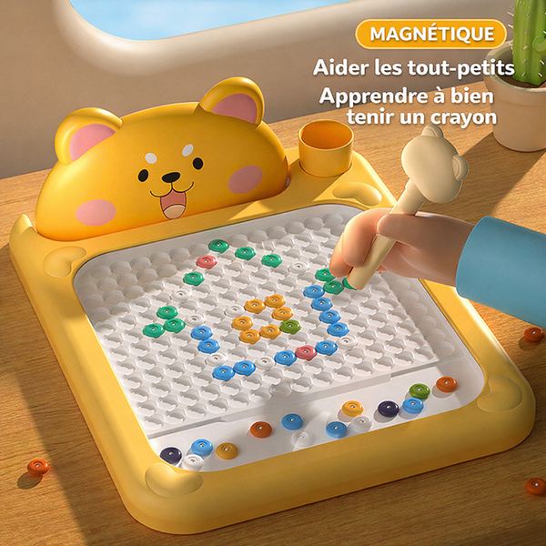 Ce tableau magnétique transforme l'écran en jeu créatif. Les perles aimantées cliquent sous le stylet, captant l'attention des enfants pendant que vous finissez une tâche ou prenez un moment pour vous.